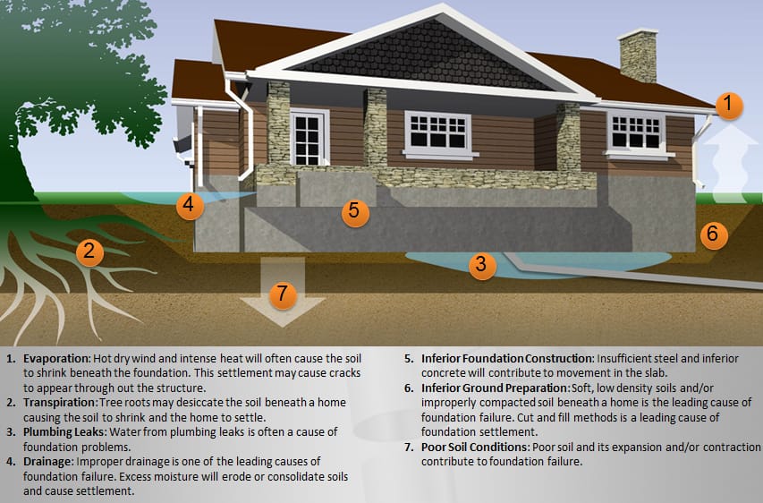 Main indicators of uneven or sloping floors, bowing basement walls, a leaning chimney, gaps around doors, windows, or cabinets, and even water pooling or drainage issues around your home.